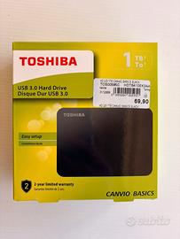 Vendo hard disk esterno TOSHIBA 1TB, ottimo per backup e archiviazione. Specifiche in foto