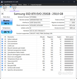Come da titolo, vendo Hard Disk Samsung Evo 870 250 Gb perfettamente funzionante, interfaccia sata.