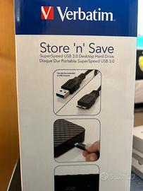 Hard disk esterno desktop Verbatim Store ’n’ Save da 6 TB, ideale per l’archiviazione e il backup di grandi quantità di dati come foto, video, film, musica e documenti.