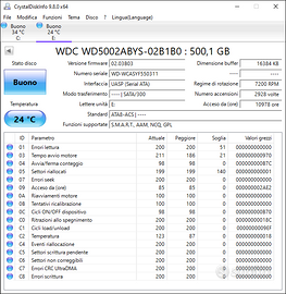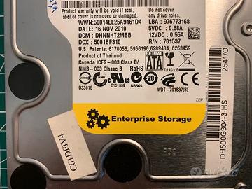 Hard disk drive Western Digital da 500GB. - Modello: WD RE3 WD5002ABYS - Capacità: 500GB - Cache: 16MB - Interfaccia: SATA