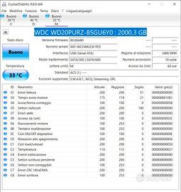 HARD DISK INTERNO WESTERN DIGITAL WD20PURX PURPLE 2 TB SATA 3.5" Hard disk specifico per utilizzo in sistemi di videosorveglianza. Utilizzato pochissimo (vedi analisi CrystalDiskInfo allegato) e perfettamente funzionanante. Fornisco in dotazione custodia rigida specifica per hard disk e spedisco in apposita busta imbottita antistatica.