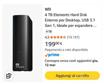 Hard disk esterno WD Elements da 4TB. Ideale per archiviare tutti i tuoi file. - Capacità di 4TB - Design compatto e moderno - Colore nero PREZZO NON TRATTABILE