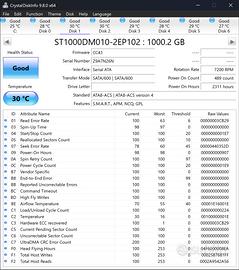 Vendo HDD Interno Seagate BarraCuda 1TB, modello ST1000DM010. Disco analizzato SETTORE PER SETTORE con DiskGenius, stato OTTIMO (0 settori danneggiati, severi, poveri o normali, tutti buoni/eccellenti). L'unità è progettata per l'uso in computer desktop, sistemi di sorveglianza (NVR/DVR) e archiviazione collegata alla rete (NAS). Capacità: 1 terabyte (1000 GB). Fattore di forma: azionamento interno da 3,5 pollici. Interfaccia: SATA III (6 GBit/s). Prestazioni: velocità di rotazione di 7.200 giri/min con una cache di 64 MB. Velocità di trasferimento: fino a 210 MB/s.