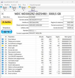 N. 1 WD da 3TB modello WDBWLG0030HBK-0B - PREZZO 25 EURO (errori smart)