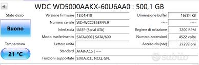 Vendo Hard Disk Western Digital WD Blue da 500 GB (SATA, 16MB Cache). Entrambi funzionanti e testati con CrystalDiskInfo (vedi foto). Perfetti per PC desktop o come dischi di backup. 💶 Prezzo: 20 € uno oppure 35 € la coppia 📦 Consegna a mano zona Rimini o spedizione.