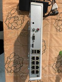 Dispone di 1 ingresso e 1 uscita audio RCA per audio bidirezionale e 2 uscite video: uscita VGA e uscita HDMI Full HD. Sistema operativo integrato, con multitasking e tecnologia pentaplex che consente: visualizzazione dal vivo, registrazione, riproduzione, backup e accesso remoto contemporaneamente. Ha uno switch integrato PoE switch da 8 canali, in grado di alimentare 8 telecamere PoE IP , erogando fino a 100 W totale.