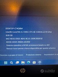 Vendo notebook HP 250 G5 completamente funzionante, ricondizionato e pronto all’uso. ✔ Intel Core i5-7200U ✔ 8GB RAM ✔ SSD Samsung 850 EVO 250GB (veloce) ✔ Schermo 15.6” ✔ Windows installato e aggiornato ✔ Wi-Fi, HDMI, LAN, USB, lettore SD 💻 PC fluido per: lavoro d’ufficio studio navigazione e streaming 🔧 Condizioni: Ricondizionato e testato Buone condizioni estetiche Nessun problema funzionale 📦 Incluso caricatore originale 💬 Ideale per chi cerca un portatile affidabile a prezzo contenuto.