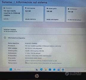 Vendo computer Notebook Laptop Pc Portatile HP 250 G8. Batteria usata al 94%, 38,52Wh su 41Wh. Alimentatore originale HP compreso, presente scatola e imballo. Pronto all'uso, adatto per Photoshop, elaborazione audio/video, ottimo per l'ufficio, per la videoscrittura, internet, youtube, film in streaming, posta elettronica, didattica a distanza, uso domestico. E' molto maneggevole grazie alla linea sottile e al peso di soli 1,7Kg. Sistema operativo: Windows 11 Pro ultima versione 25H2. Tutti i driver aggiornati con utenza di amministratore senza password o PIN. Pacchetto Office Professional Plus 2016 licenziato a vita solo su richiesta dell'acquirente. Disco rigido primario: SSD M.2 MVMe PCIe, 256 GB Solid State Drive Disco rigido secondario: 500GB HDD 2,5" SATA 5400rpm Scheda grafica integrata Intel® UHD Graphics Intel® Core™ i3-1115G4 Processor 3.0 GHz (6M Cache, up to 4.1 GHz, 4 Threads) Memoria RAM 16GB DDR4 3200 MT/s upgradabile a 32GB con prezzo da concordare con l'acquirente. Schermo 15,6" HD (1366 x 768), bordi sottili, antiriflesso, 250 nit, 45% NTSC 1 USB Type-C con velocità di trasmissione di 5 Gbps 2 USB Type-A con velocità di trasmissione di 5 Gbps 1 alimentatore CA 1 HDMI 1.4b 1 jack combinato per cuffie/microfono stereo Scheda wireless Realtek RTL8822CE 802.11a/b/g/n/ac (2x2) Wi-Fi® Ethernet LAN (RJ45) Bluetooth® 5.0 Fotocamera HD da 720p Doppi altoparlanti stereo Tastiera di dimensioni standard, con tastierino numerico Touchpad con supporto gesti multi-touch, tocchi abilitati come impostazione predefinita Tastiera Italiana QWERTY Consegna a mano nella città di Siena. Possibilità di scambio su Arezzo, Firenze, Prato, Pistoia. Col servizio Tuttosubito spedizione in tutta Italia. Non accetto proposte d'acquisto, d'accordo sul prezzo faccio io l'offerta valida per 48ore. Tel. 3501333975