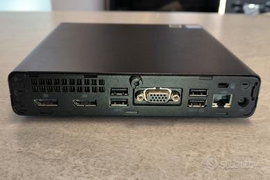 disponibili alcuni pezzi HP 600 g4 Mini, configurazione con i5-8500T, 8gb RAM ddr4 e disco HDD 500GB, no wifi integrato. su richiesta possibilità di variazioni come disco SSD o pc con CPU i7-8700T Alimentatore da 65 watt HP incluso! dispone di licenza ufficiale Windows PRO integrata, già effettuata installazione pulita di Windows 11 Pro ottimo come pc d'ufficio, media center, emulatori retrogaming Batocera, micro server a basso consumo ESXi, domotica come home assistant o sostituto raspberry disponibile altro materiale, contattatemi per info! CPU: Intel Core i5-8500T, Turbo Boost Fino a 3,5 GHz, 9 MB di cache, 6 core, 6 thread RAM: 8GB DDR4 HDD: 500 GB 7200rpm GRAFICA: Intel UHD 630 DIMENSIONI: 18*18*3.5 cm Alimentatore da 65 watt Slot e componenti interni: 1x M.2 PCIe x1-2230 (per WLAN) 2x M.2 PCIe x4-2280/2230 (per archiviazione) 1x connettore di archiviazione DM SATA per dischi 2.5" Altoparlante interno 2 watt Porte anteriori: 2x USB 3.1 1x porta USB 3.1 Gen 2 Type-C 1x microfono (stereo, 3,5 mm) 1x jack combinato cuffie/microfono (stereo, 3,5 mm) Porte posteriori: 4x USB 3.1 1x VGA DB-15, 2x DisplayPort 1x Gigabit Ethernet Intel I219-LM 1x alimentazione