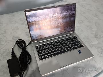HP EliteBook 640 G10. Telaio in alluminio e componenti audio Bang & Olufsen Processore intel core i5 1345U processore di tredicesima generazione. Ram 32 Gb. Disco SSD M.2 western digital da un terabyte (1000 gigabyte) Scheda video Intel Iris X. Schermo FHD da 14 pollici con Touch screen . Porta HDMI n. 2 porte USB 3.0 n. 2 porte USB C 4.0 thunderbolt Sistema operativo windows 11 pro + office + programmi vari. Pc adatto a lavoro + studio + gaming leggero. Il pc é perfetto pari al nuovo con 8 mesi di vita ed è ancora in garanzia. Non spedisco e non faccio scambi.