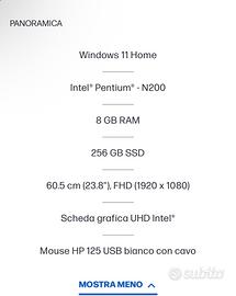 HP 24-cr0034nl All-in-One PC regolabile,Regolabile in altezza | Webcam con riconoscimento del volto | WiFi 6 e Bluetooth,