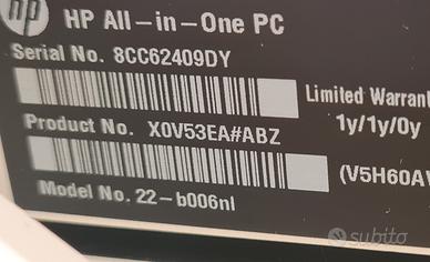 Hp all in one modello 22-b06nl cpu intel pentium J3710 8 gb ram 1 tb ssd schermo 22 tastiera mouse e alimentatore originali perfettamente funzionante