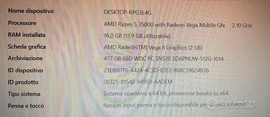 Vendo per passaggio a macchina superiore, la macchina è tenuta bene ottimizzata al massimo con Win10, monta PROCESSORE AMD RYZEN 5 - 16G RAM - SSD 512G No perditempo!!