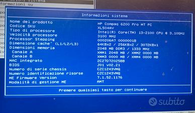 HP Compaq 6200 pro MT C i3 2100 3,10 Ghz con Linux mind perfettamente funzionante contatti whatsapp per ritiro a mano 3389923089