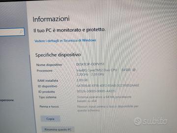 Processore Intel E4500 da 2,20 GHz, ram 3 gb, disco da 500 giga. Formattato e revisionato. Qualsiasi prova. Munito di scheda interna wifi con antenna ad alto guadagno per collegamento senza fili