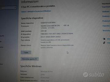 Computer usato, presenta alcuni leggeri difetti estetici (visibili in foto) che non influiscono in alcun modo sulla funzionalità della macchina.