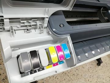 - Ancora più grandi con questa stampante. Stampa su una gamma di formati di fogli da 1118 mm (44 pollici) di larghezza del rullo. Lavorate con una vasta gamma di supporti diversi. E stampate una gamma di applicazioni CAD e GIS, tra cui grandi progetti di infrastrutture e di mappatura geospaziale.