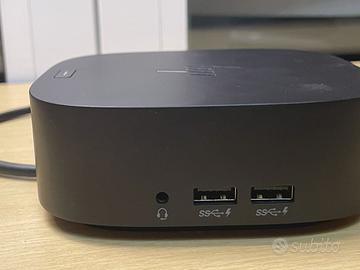 Vendo docking station HP Dock G5 Essential, originale, in ottimo stato, testata e perfettamente funzionante. Completa di alimentatore originale HP da 120W, pronta all’uso. Supporta triplo display, collegamento al PC con singolo cavo (dati e ricarica) e accensione/spegnimento del PC attraverso tasto integrato senza aprire il notebook (solo con modelli HP) La dock si presenta molto bene dal punto di vista estetico, segnalo solo un trascurabile segno di torsione sul connettore USB, che non ne compromette il funzionamento. Ideale per espandere la connettività di notebook e postazioni da lavoro, ottima sia per uso ufficio che smart working è una soluzione pratica e affidabile per collegare facilmente notebook e periferiche a una postazione fissa, mantenendo la scrivania più pulita e organizzata. Condizioni reali come da foto. Porte anteriori: - 1m cavo dati+alimentazione USB-C 3.2 Gen 1 Power Delivery (100W) - 1 USB-C 3.2 Gen 1 Power Delivery (15W) Porte laterali: - 2 USB-A 3.2 Gen 1 (con supporto ricarica) - 1 uscita jack cuffie 3,5mm. Porte posteriori: - 2 USB-A 3.2 Gen 1 - 1 porta HDMI 2.0 - 2 porte DisplayPort 1.4 - 1 porta Gigabit Ethernet RJ-45 - 1 slot per lucchetto Kensington standard Dimensioni 12,2Lx12,2Lx4,5H cm Peso 700 g Compatibile con HP Elite x2 1012 G1; HP Pro x2 612 G2; HP EliteBook Folio G1; HP EliteBook x360 1030 G2; HP EliteBook x360 1020 G2; HP EliteBook 1040 G4; HP EliteBook 800 G5; HP EliteBook 700 G5; HP ProBook 600 G4; HP ProBook 400 G5; ZBook 14u G5; ZBook 15u G5; qualunque altro portatile con porta USB-C e supporto Power Delivery Articolo disponibile se annuncio visibile. Visionabile e testabile a piacere e senza impegno presso mio domicilio in San Donato Milanese (MI). Scambio a mano o spedizione con TuttoSubito. L'articolo verrà spedito in imballaggio originale ma di altro modello (G6)