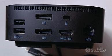 Docking Station HP USB‑C Dock G5 in ottime condizioni. Incluso cavo di sicurezza HP originale con doppia chiave. Usata in ambiente aziendale, perfettamente funzionante. Ideale per collegare monitor, rete e dispositivi. Ritiro a mano.