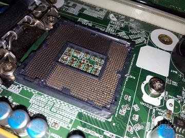 Pc desktop HP Elite 8300 SFF , Pentium g2030 , 2x2 gb ddr3. Mancano il disco fisso che si è rotto e il lettore DVD. Come si vede dalla foto, pin del socket storti (foto 2) , ma il pc funziona senza problemi e tutti i 4 slot ram funzionanti (foto 4).