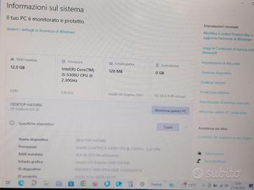 Vendo computer portatile Hp Elite Book 820 G2 RAM 12GB, scheda grafica 128MB, S.O. Windows 10 Home, Processore Intel(R) Core(TM) i5-5300U CPU 2.30GHz