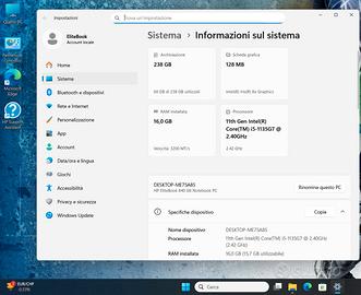 Alluminio Notebook 14" HP EliteBook 840 G8 i5-1135G7 16 RAM 256 SSD In perfette condizioni. Poco usato e ben conservato. Pulito e testato. Windows 11 PRO + Office 2024 PRO Intel® Core™ i5-1135G7 4 Core 8 Thread (2,4 GHz Turbo 4.2 GHz, 8 MB Cache) RAM 16 Gb DDR4 3200 MHz + slot libero SSD 256 Gb M.2 NVMe™ PCIe Display 14" (35,56 cm) FullHD IPS (1920x1080) Antiriflesso Grafica Intel® Iris® Xe Graphics 2x USB 4 Gen 3.2 Type-A, 2x USB 4 Gen 3.2 Type-C (Thunderbolt™ 3.2 DisplayPort) HDMI 2.0b, Audio Jack, Slot Smart Card, Fingerprint Bluetooth® 5.0, Wi-Fi 6 (802.11ax) Dual band, Webcam 720p IR HD 5 MP Audio Bang&Olufsen, 2 Altoparlanti, Tastiera HP Premium Retroilluminata Batteria Li-Ion 3-cell 53Wh, 78% salute, circa 4 ore Completo alimentatore Dimensioni 323x214x18 mm, Peso 1,5 kg Per maggiori informazioni contattami Spedizione con tracciabilita tramite TuttoSubito