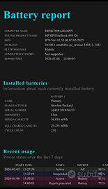 Schermo 15,6” antiriflesso, tastiera estesa con tastierino numerico, touchpad con doppi tasti e stick centrale, audio Bang & Olufsen, webcam integrata, Wi‑Fi, Bluetooth, porte USB, USB‑C/Thunderbolt, HDMI e rete RJ45. Batteria con circa 200 cicli di ricarica, con report stato batteria visibile tra le foto, e buona autonomia in uso ufficio/navigazione.