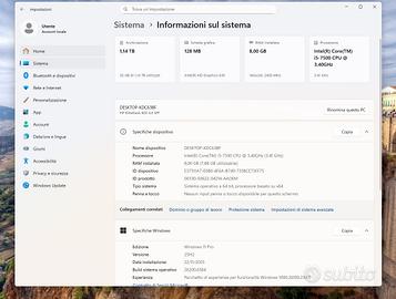Vendo PC HP EliteDesk 800 G3 SFF perfetto, in condizioni estetiche pari al nuovo con le seguenti caratteristiche: Processore I5-7500 Ram DDR4 da 8gb Ssd Nvne da 256gb HDD da 1 Tb Windows 11 Pro USB - TypeC - DisplayPort - VGA Completo di accessori Originali nuovi mai usati (tastiera + mouse USB cavo di alimentazione) Disponibile per ulteriori informazioni