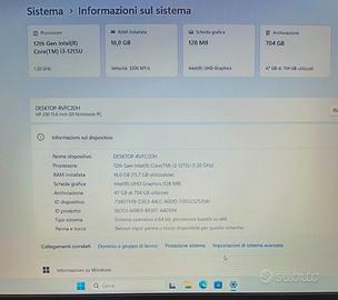 Pari al nuovo vendo computer Notebook Laptop Pc Portatile HP 250 G9. Batteria usata al 99,5%, 40,7Wh su 41Wh. Alimentatore originale HP compreso, presente scatola e imballo. Pronto all'uso, adatto per Photoshop, elaborazione audio/video, ottimo per l'ufficio, per la videoscrittura, internet, youtube, film in streaming, posta elettronica, didattica a distanza, uso domestico. E' molto maneggevole grazie alla linea sottile e al peso di soli 1,7Kg. Sistema operativo: Windows 11 Pro ultima versione 25H2. Tutti i driver aggiornati con utenza di amministratore senza password o PIN. Pacchetto Office Professional Plus 2016 licenziato a vita solo su richiesta dell'acquirente. Disco rigido primario: SSD M.2 MVMe PCIe, 256 GB Solid State Drive della migliore marca (Samsung) Disco rigido secondario: 500GB HDD 2,5" SATA 5400rpm Scheda grafica integrata Intel® UHD Graphics Intel® Core™ i3-1215U Processor 3.3 GHz (10 MB Cache, up to 4.4 GHz, 6 Cores 8 Threads) Memoria RAM 16GB DDR4 3200 MT/s upgradabile a 32GB con prezzo da concordare con l'acquirente. Schermo 15,6" FHD (1920 x 1080), bordi sottili, antiriflesso, 250 nit, 45% NTSC 1 USB Type-C® con velocità di trasmissione di 5 Gbps 2 USB Type-A con velocità di trasmissione di 5 Gbps 1 alimentatore CA 1 HDMI 1.4b 1 jack combinato per cuffie/microfono stereo Ethernet LAN (RJ45) Scheda wireless Realtek RTL8822CE 802.11a/b/g/n/ac (2x2) Wi-Fi® Bluetooth® 5.0 Fotocamera HD da 720p Doppi altoparlanti stereo Tastiera di dimensioni standard, con tastierino numerico Touchpad con supporto gesti multi-touch, tocchi abilitati come impostazione predefinita Tastiera Italiana QWERTY Consegna a mano nella città di Siena. Possibilità di scambio su Arezzo, Firenze, Prato, Pistoia. Col servizio Tuttosubito spedizione in tutta Italia. Non accetto proposte d'acquisto, d'accordo sul prezzo faccio io l'offerta valida per 48ore. Tel. 3501333975
