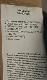 Vendo bellissimo HP Laptop pari al NUOVO! Caratteristiche tecniche: -Processore Intel Core I5 -Memoria 512GB -Windows 11 -Full HD -Colore Grigio Chiaro Acquistato il 31/10/2025 da Unieuro!!! Prezzo LEGGERMENTE trattatibile! NO PERDITEMPO!