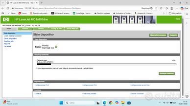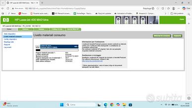 Stampante Hp LaseJet 400 M401dne in buone condizioni! Funziona in rete! Porta usb difetuosa! Toner restante 10 , circa 950 pagine! Stampante gestibile con servizi web hp!