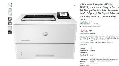 HP LaserJet Enterprise M507dn 1PV87A, Stampante a Singola Funzione A4, Stampa Fronte e Retro Automatica in b/n, 50 ppm, USB, Gigabit Ethernet, HP Smart, Schermo LCD da 6,9 cm, Bianca.