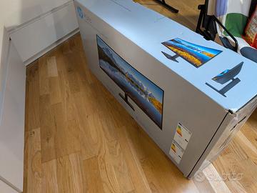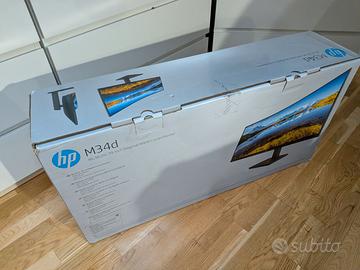 Vedo per cambio setup, monitor HP M34d curvo, da 34 pollici WQHD (3440 x 1440p), regolabile in altezza. Funziona con un singolo cavo USB-C che ricarica (ovviamente funziona anche con HDMI e DisplayPort).