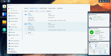 Connettività, tutte da 1GbE: una porta onboard piu' una porta con scheda PCIe configurata in LAG Bound (Link Aggregation a 2000 Mbps e Failover).