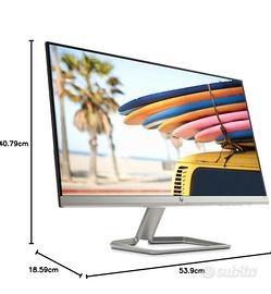 HP – Monitor 24 pollici” FHD 1920 x 1080 a 60 Hz, IPS, Antiriflesso, Borderless, Tempo risposta 5 ms, AMD FreeSync, Regolazione Inclinazione, Comandi su schermo, Low blue light, , HDMI, Argento