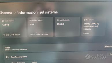 HP Omen 15" i7-9750H 2,50 Ghz,