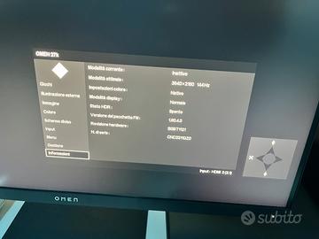 pannello IPS da 27 pollici con risoluzione 4K Ultra HD (3840 x 2160p), diagonale da 68,6 cm, Refresh Rate da 144Hz, Tempo di risposta 5 ms, Display HDR 400, 400 nits, volume colore DCI-P3 95%