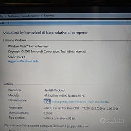 Vendo vecchio pc usato (del 2006- 2007) HP Pavilion dv6500.