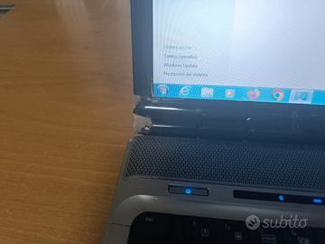 PC Hp Pavillion DV9000, monitor 17”, processore Core 2 T5600 @ 1.83 ghz, 3 GB RAM, Windows 7, completo di alimentatore, batteria esausta ma funziona attaccato alla corrente. Presenta alcune rotture della copertura in plastica in prossimità delle cerniere del monitor che sono state sostituite (vedi foto). Le caratteristiche e le uscite e le varie prese si vedono dalle foto. Condizioni discrete.