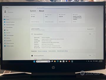 Vendo laptop HP Pavilion Gaming 15 per passaggio a modello superiore. Il computer è stato tenuto maniacalmente, non presenta segni di usura, graffi o ammaccature. È praticamente pari al nuovo.