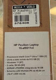 Intel core ultra 7 , 512 GB , Win 11 , 16 GB SDRAM , schermo 16” LED WUXGA