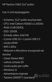Notebook HP Pavilion x360 convertibile da 11 Pollici