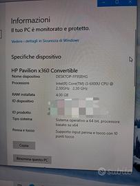 Vendo notebook portatile HP Pavilion x360 convertible 13-s100nl con touch screen, windows 10, 4GB di Ram e 512GB di memoria interna, computer perfettamente funzionante e in buone condizioni.