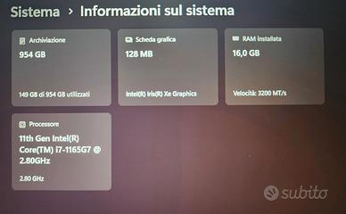 Processore: 11th Gen Intel core i7 1165G7 da 2.80 Ghz