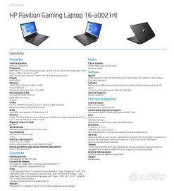 Vendo pc portatile HP pavilion Gaming 16-a0xxx per passaggio a Macbook Pro.