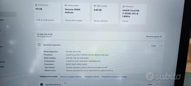 HP-PC EliteBook 850 G5, Intel i7-8550U, RAM 8 GB, SSD 128GB, Windows 11 Pro, Schermo 15,6" FHD IPS Antiriflesso Presenta solo dei leggeri aloni sul monitor