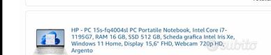 PC PORTATOLE HP RAM 16 GB SSD 512 GB ,DISPLAY 15,6 Vendo portatile HP Notebook in ottime condizioni, acquistato nel 2023. Disponibile per consegna a mano nella zona di Piazza Galimberti a Torino. Prezzo fisso: 500€. Non si negozia il prezzo.