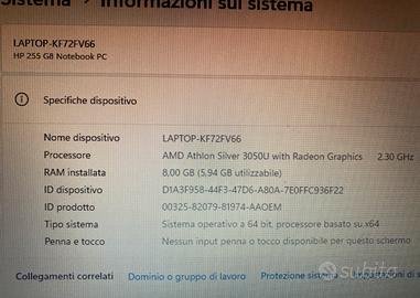 Vendo portatile HP 255 G8 in ottime condizioni, perfetto per studio, lavoro d’ufficio e utilizzo quotidiano.