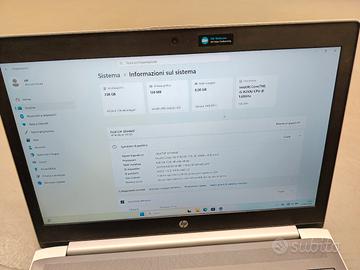 Metto in vendita HP ProBook 450 G5, notebook business della serie ProBook, solido e affidabile. Processore Intel di 8ª generazione con 4 core fisici, prestazioni eccellenti per multitasking e produttività. Specifiche tecniche: · Processore: Intel Core i5-8250U o i5-8350U (8ª generazione, 4 core / 8 thread) · RAM: 8GB DDR4-2400MHz (espandibile fino a 32GB) · Disco: SSD 256GB M.2 (avvio in pochi secondi) · Schermo: 15.6 pollici (specificare se HD 1366x768 o Full HD 1920x1080) · Sistema operativo: Windows 11 Pro già installato e attivato · Connettività: WiFi ac, Bluetooth 4.2, USB-C (con DisplayPort e ricarica), USB 3.0, HDMI, VGA, RJ45 · Sicurezza: Lettore di impronte digitali (se presente), TPM Condizioni: Usato ma tenuto molto bene. Funziona perfettamente, nessun difetto hardware o software. Batteria ancora buona (circa 3 ore ). Tastiera con tastierino numerico integrato. Solo normali segni di utilizzo. Con caricatore originale