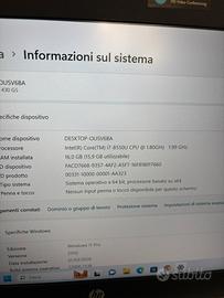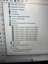 Processore I7-8550u 1.80 GHz a 4.00 GHz Ram 16gb DDR4 Doppia memoria 500gb ssd +500gb hdd Sistema operativo windows 11 (chiaramente installato sull ssd così incrementa notevolmente la velocità del portatile) Batteria ancora ottima durata circa 3 ore di utilizzo continuo sotto carico. Prese presenti, hdmi presa Type-c, ethernet, vga, 2 usb, jack 3,5, sd slot. Inoltre la webcam bluetooth wifi e lettore impronta digitale. Il pc si trova in buone condizioni. Con normali segni di usura dovuti al tempo. Come vedi dalle foto. Richiesta 290€